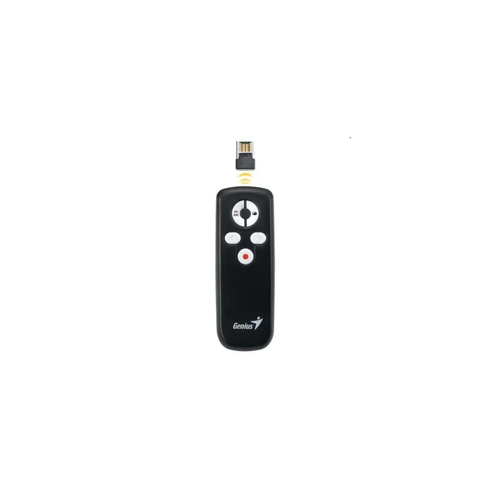 Genius Presenter Media Pointer 100, Csatlakozás: Vezeték nélküli, Csatoló felület: USB, Gombok száma: 5 gomb, Szín: Fekete