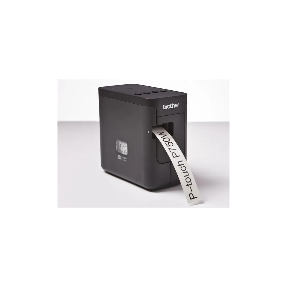 BROTHER Címkenyomtató PT-P750W, Technológia: Termáltranszfer laminált, Felbontás: 180 x 360 (PC csatlakozás esetén) dpi, Sebesség: 30 (hálózati tápegységről) mm/mp, Max. nyomtatási szélesség: 18 mm, Címkehossz: 24-600 mm, Legkisebb margó: 2 mm, Vágás: Automata + riccelés
