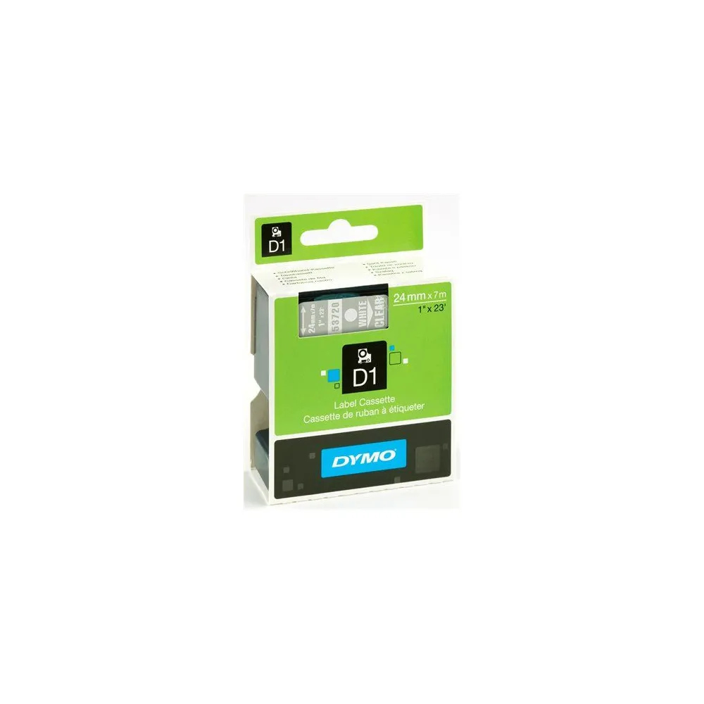 DYMO D1 kazetta, Háttérszín: Víztiszta, Szöveg szín: Fehér, Szélesség: 24 mm, Darab/csomag: 1, Hossz: 7 m